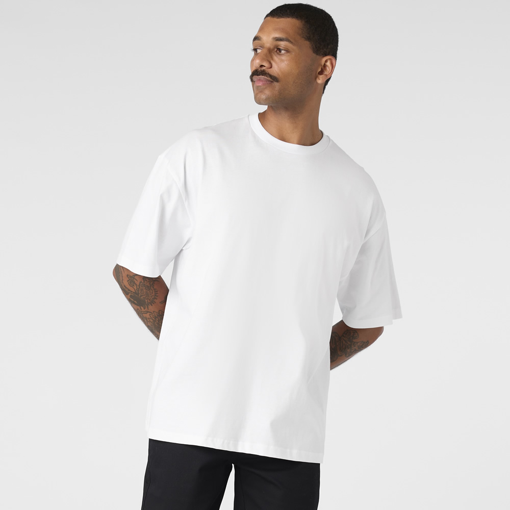 Product Details: The Block Oversized Tee is made from pre-shrunk, mid-weight carded cotton for a relaxed, modern oversized fit. Designed with a tubular construction (no side seams), dropped shoulders, and a tear-out label, it delivers all-day comfort with a clean, effortless look.